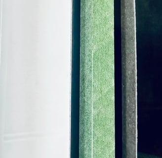 El núcleo de la mampara está compuesto de MDF (tablero de fibra de madera de densidad media Hidrófugo y en ocasiones Ignifugo) que actúa como alma, proporcionando una estructura sólida y estable. Este material, en combinación con el acabado de acero porcelanizado, permite una ligera reducción de peso sin comprometer la resistencia.